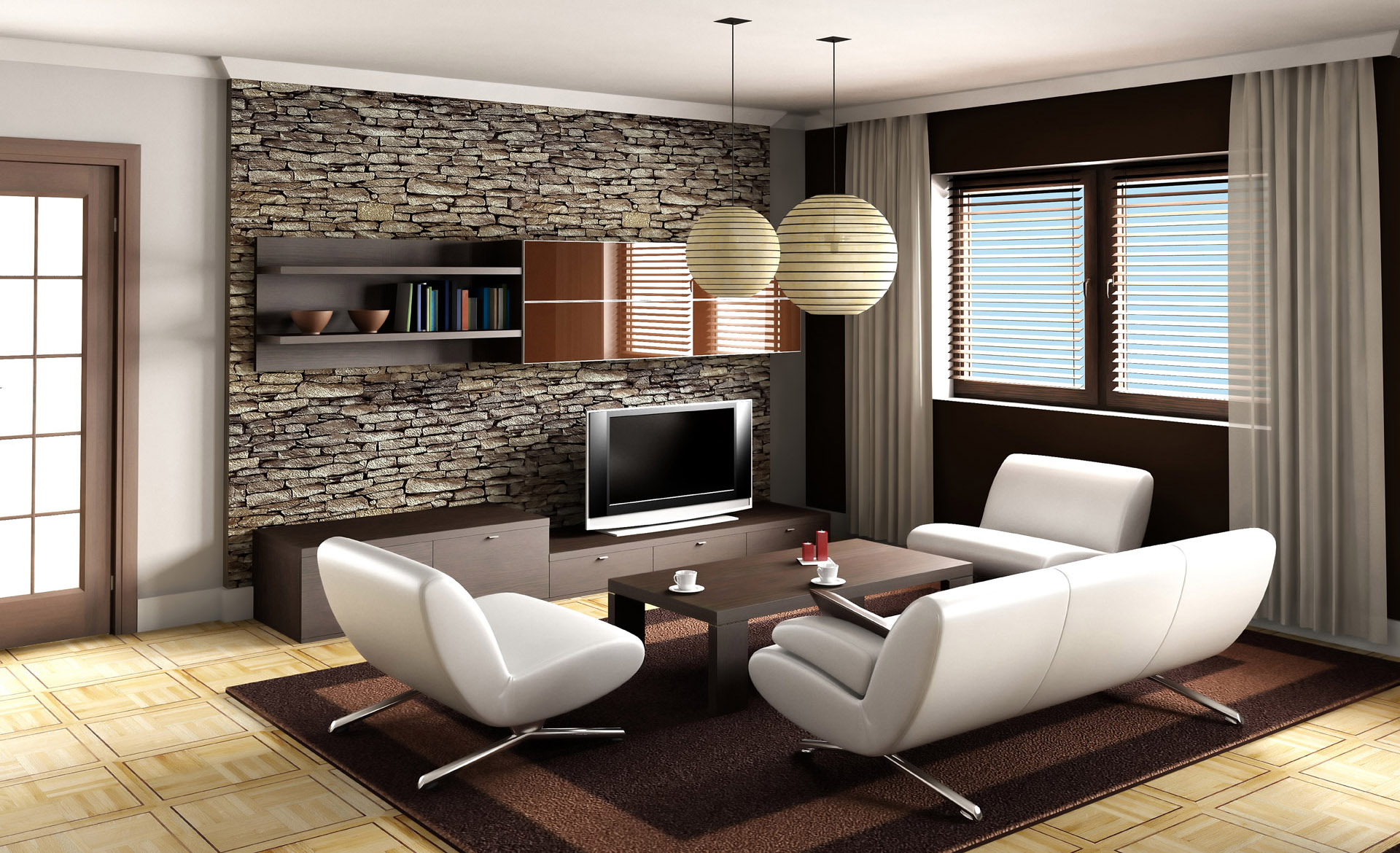 Desain Ruang Tamu Minimalis Sederhana Lantai Kayu Parket